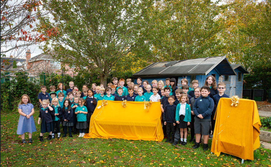 We were very excited to unveil our new bench. 3 years ago, the school was involved in a project with Burlington Press, who came into school to run a workshop with Year 5 and 6 children. The workshop involved designing benches and tables for use at the Burlington Press site. There were many excellent designs and the company made some into actual benches and a table. One of the benches was donated to school and we think it looks amazing!