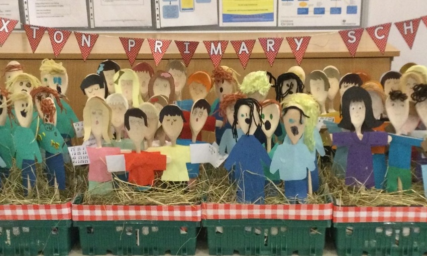 The children have enjoyed making a scarecrow of themselves singing "in perfect harmony" as part of the Foxton Scarecrow Festival.