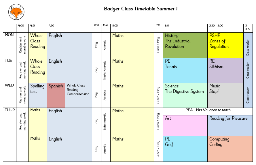 Badger Class is our Year 3 and Year 4 class. Our teacher is Mrs Nussey and our teaching assistant is Mrs Vaughan who is also a qualified HLTA. Please refer to the timetable below to see what is taught and when.